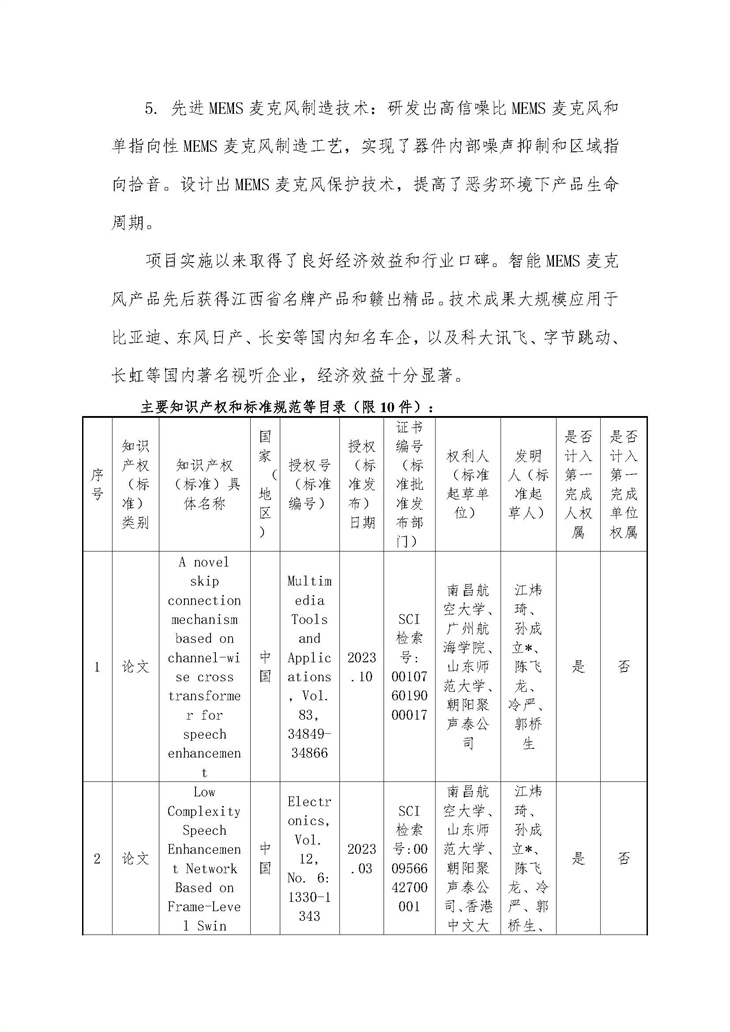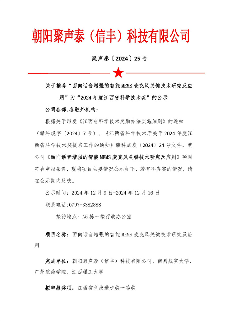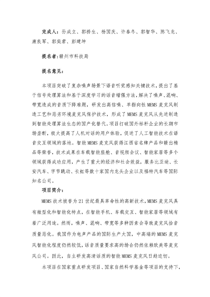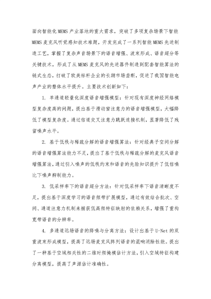 “面向話音增強的智能 MEMS 麥克風關鍵技術研究及應用”的公示