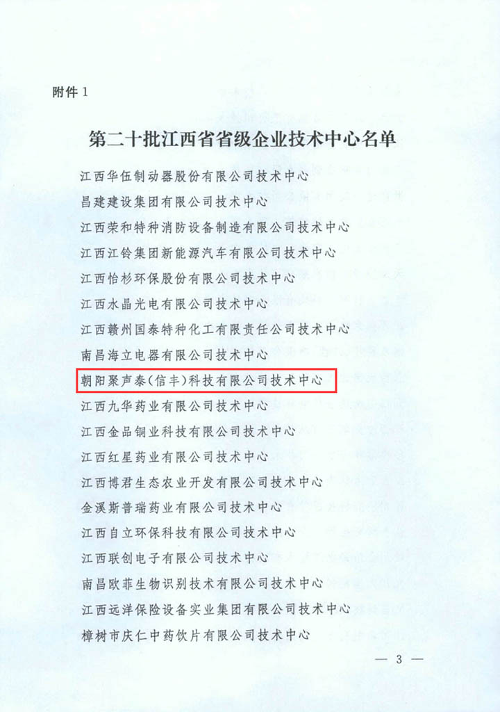 朝陽聚聲泰企業技術中心被評為省級技術中心