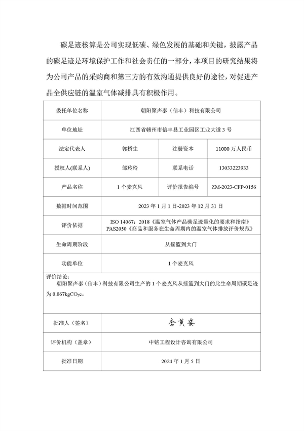 2023年公司產品碳足跡報告公示